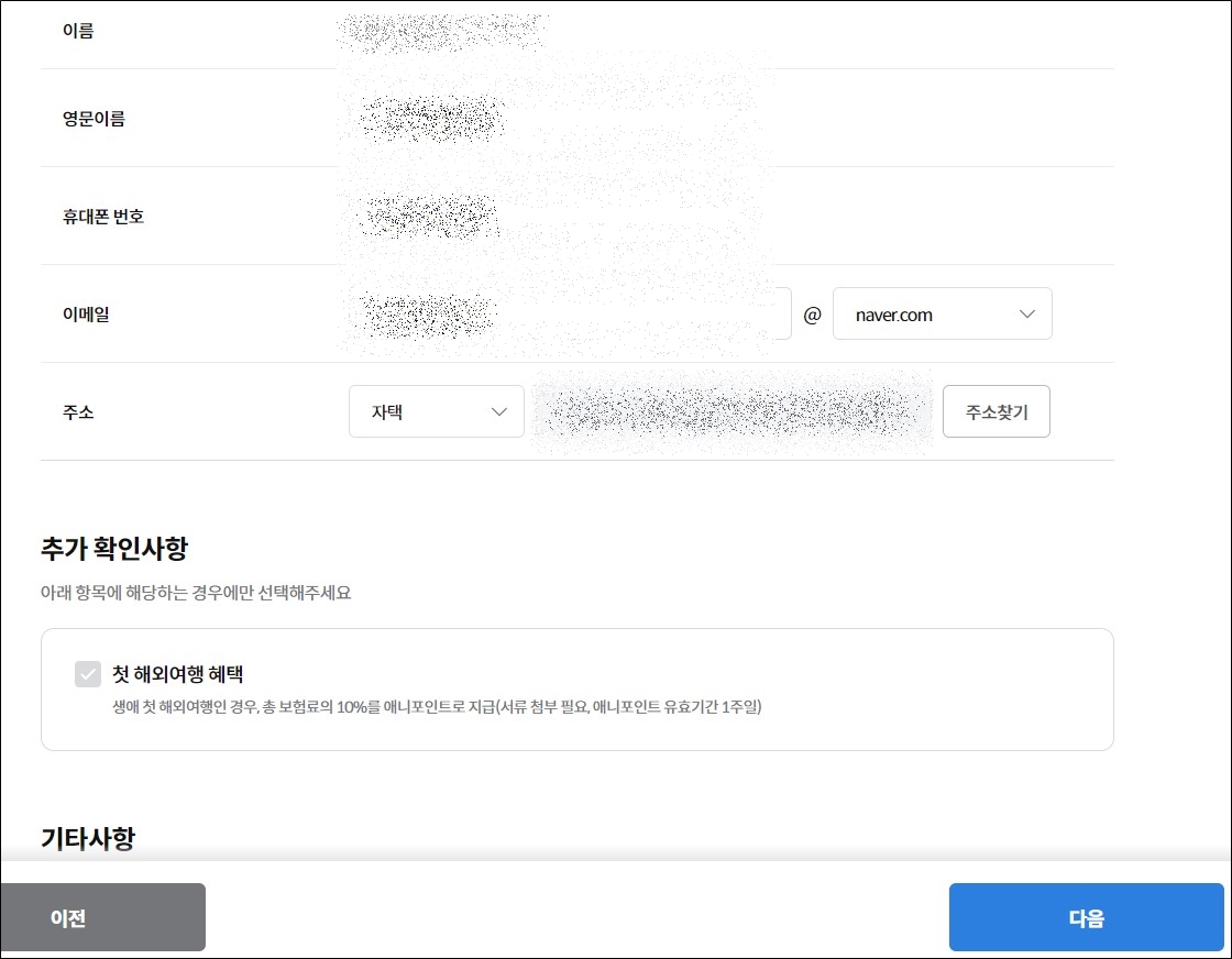 10. 여행자보험 청약 내용 확인 후 '다음'을 눌러주세요.