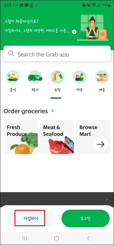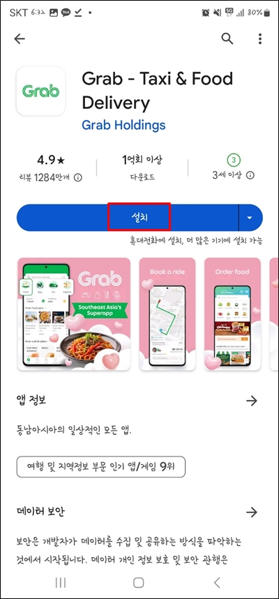 동남아여행 시 아주 유용한 택시 어플 그랩(Grab)을 설치했습니다.