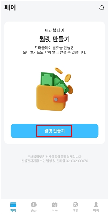6. 월렛 만들기를 누른 후 신분증 인증을 해주세요.