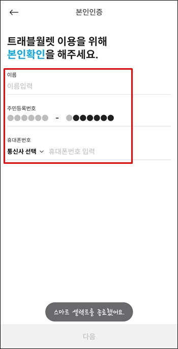 2. 트래블월렛 이용을 위해 본인 확인을 해주세요.