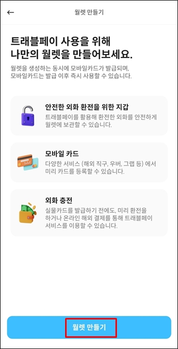 트래블월렛 가입 및 카드 신청은 어플을 통해 할 수 있습니다.