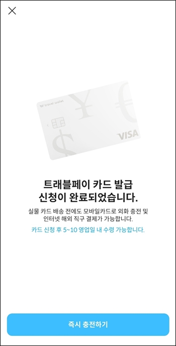 트래블월렛 우리 카드는 신용카드로 충전한 잔액 부족시에도 바로 결제가 되는 장점이 있지만 혹시라도 잃어버리면 피곤할 것 같아 그냥 트래블페이 카드로 신청을 했습니다.