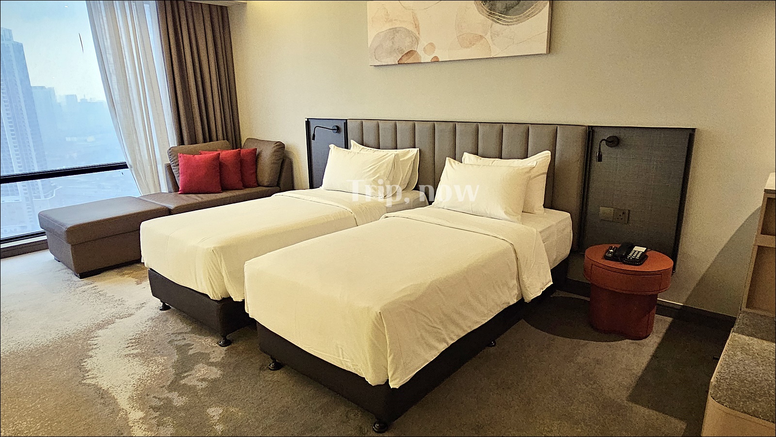 그랜드 디럭스 트윈(Grand Deluxe Twin)은 싱글베드 2개에 소파베드 1개가 있고, 객실 크기는 31㎡로 약 9.4평 정도 된다.