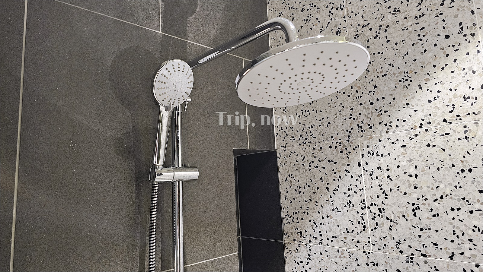 샤워기는 핸드, 고정 이렇게 두 개가 있었고 수압은 나쁘지 않았다.