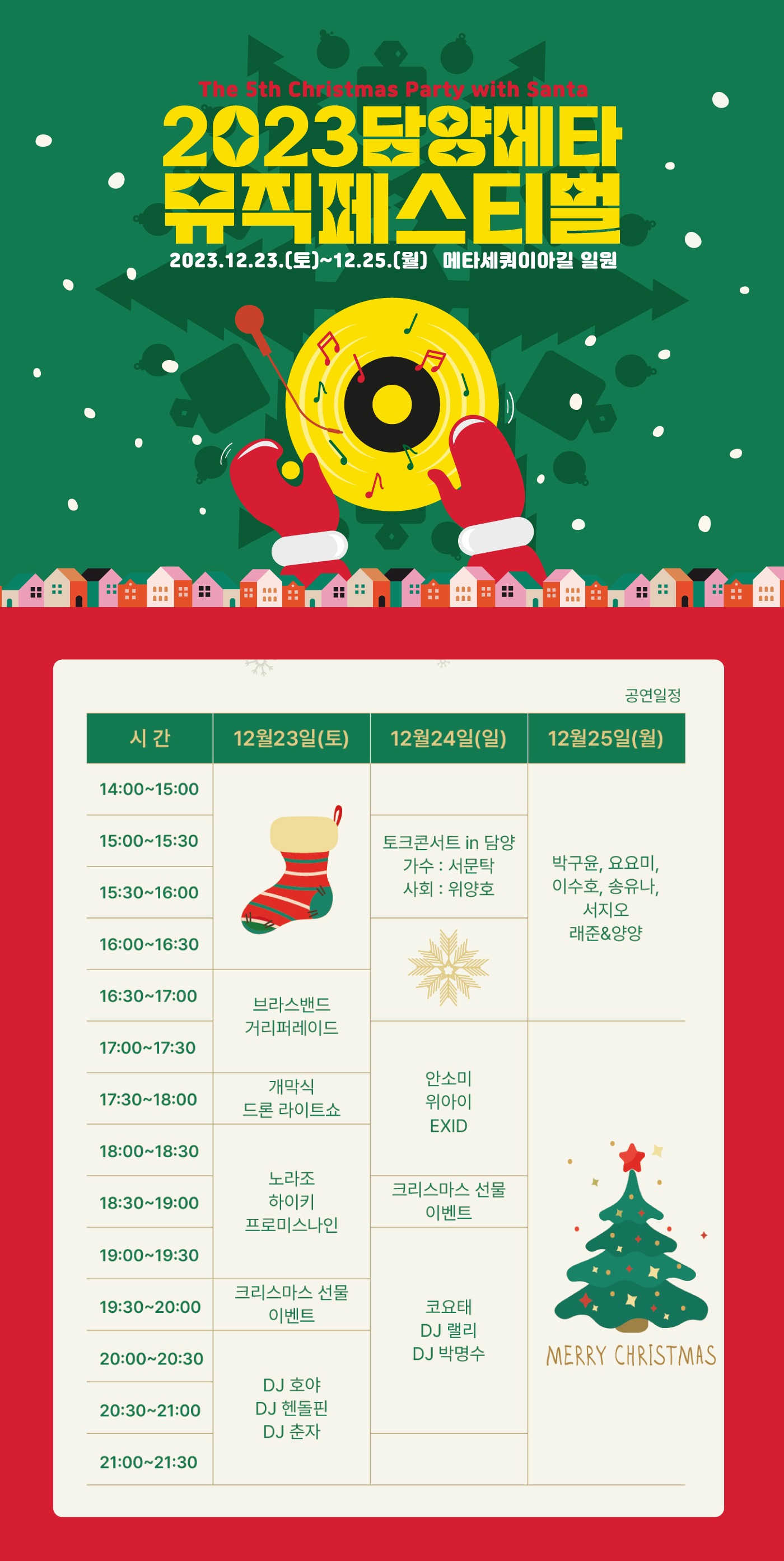 다가오는 크리스마스 연휴에 담양에서 뮤직페스티벌을 진행합니다.